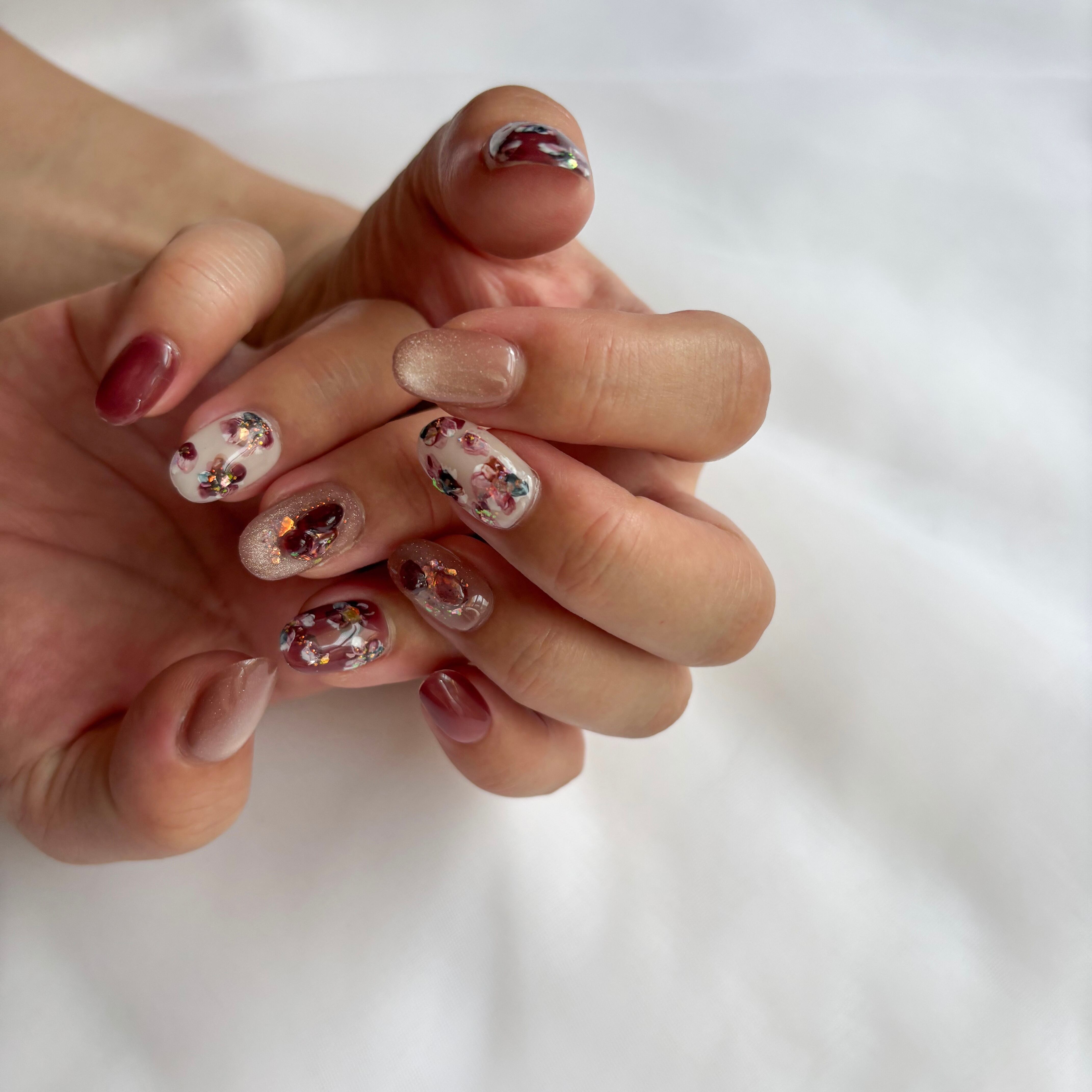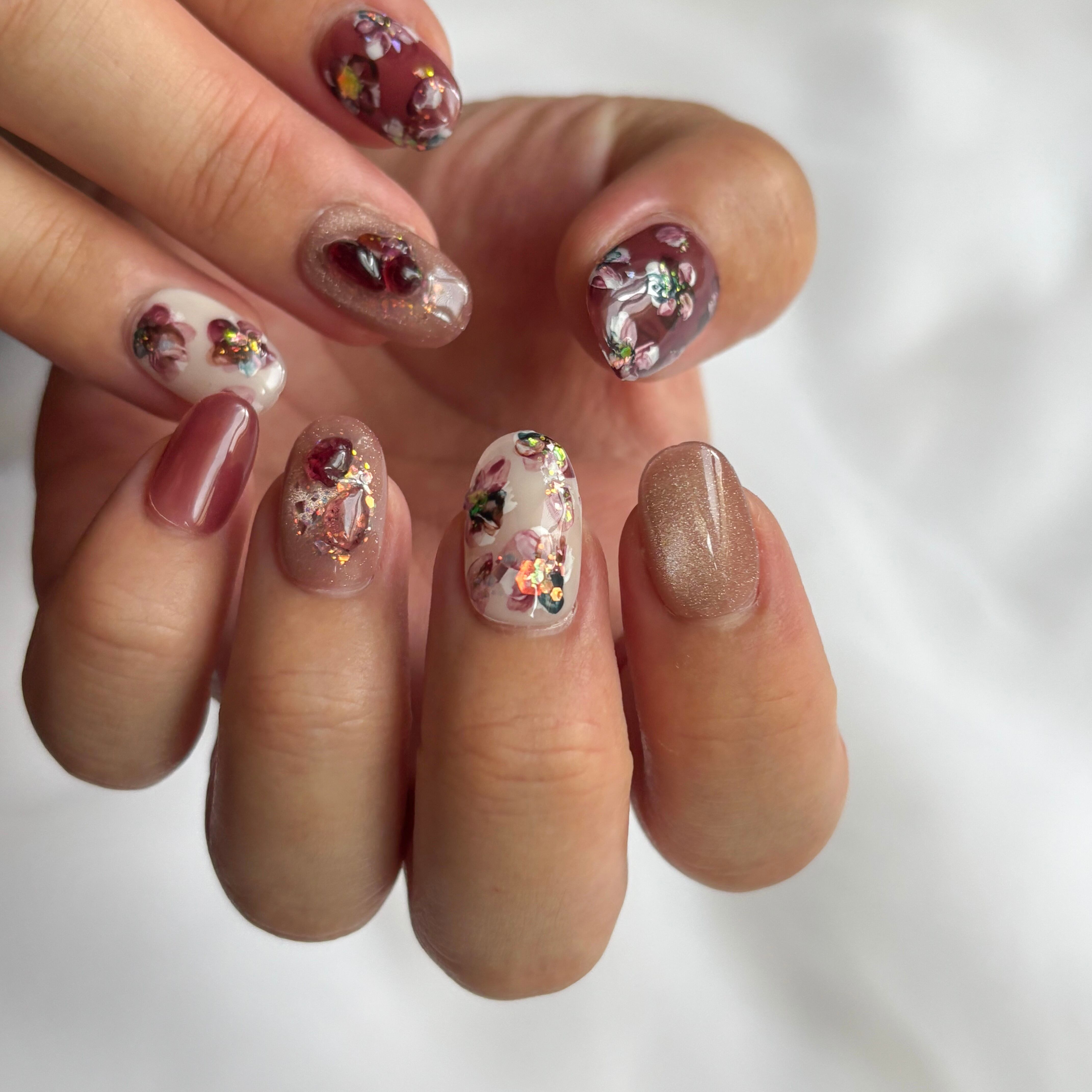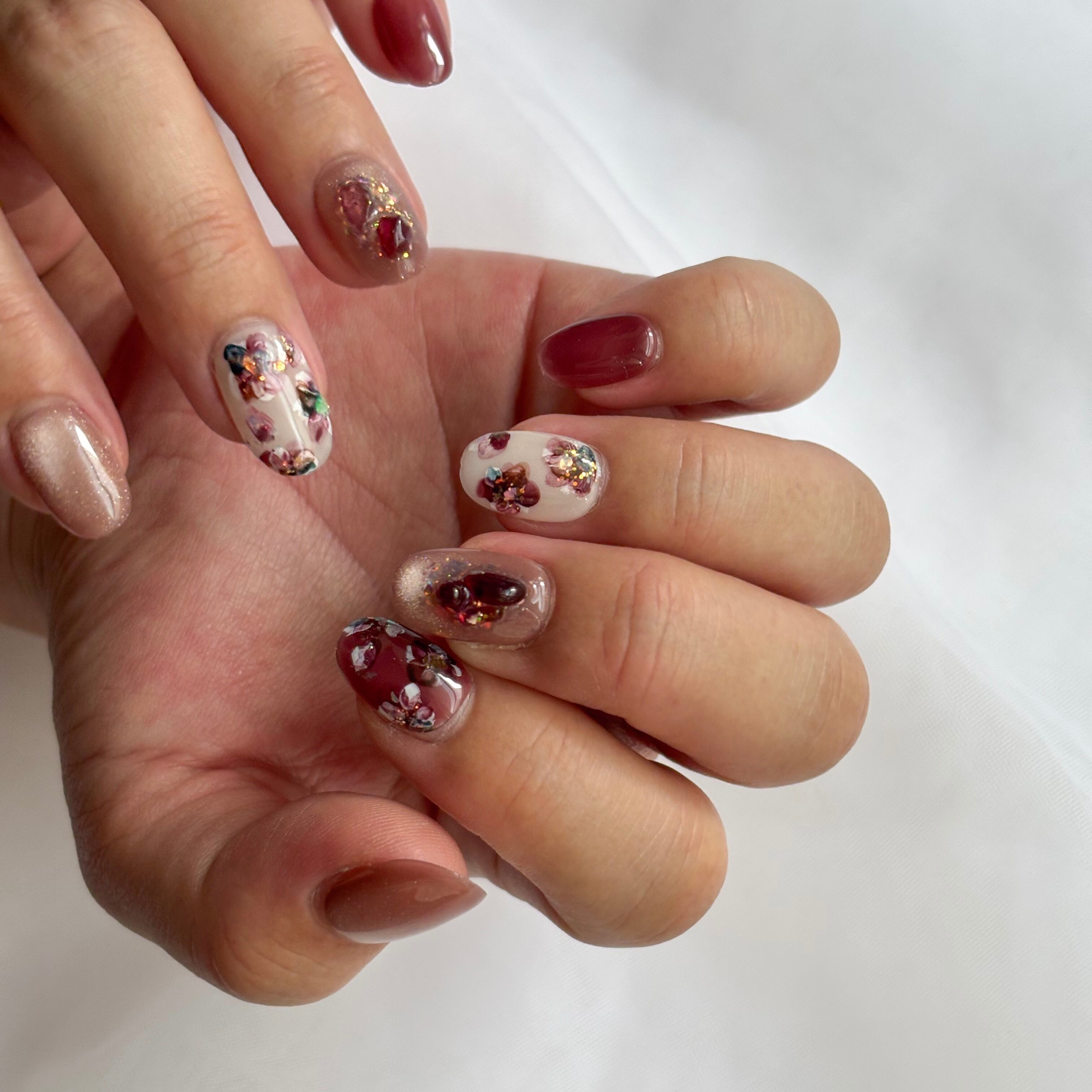 12色のマグネットジェル×繊細な手描きインクアートのお花が、大人かわいいデザイン♡