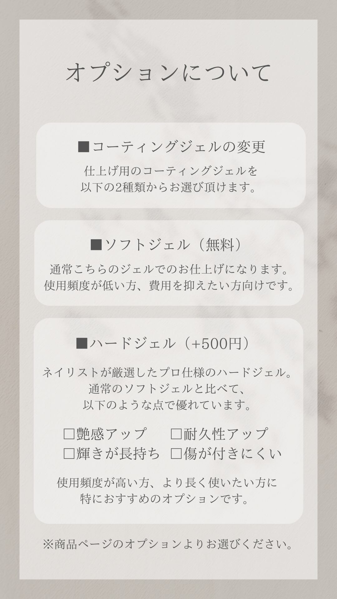 また、お選び頂いたチップの形や長さにより、アートのバランスが画像と異なる場合がございます。