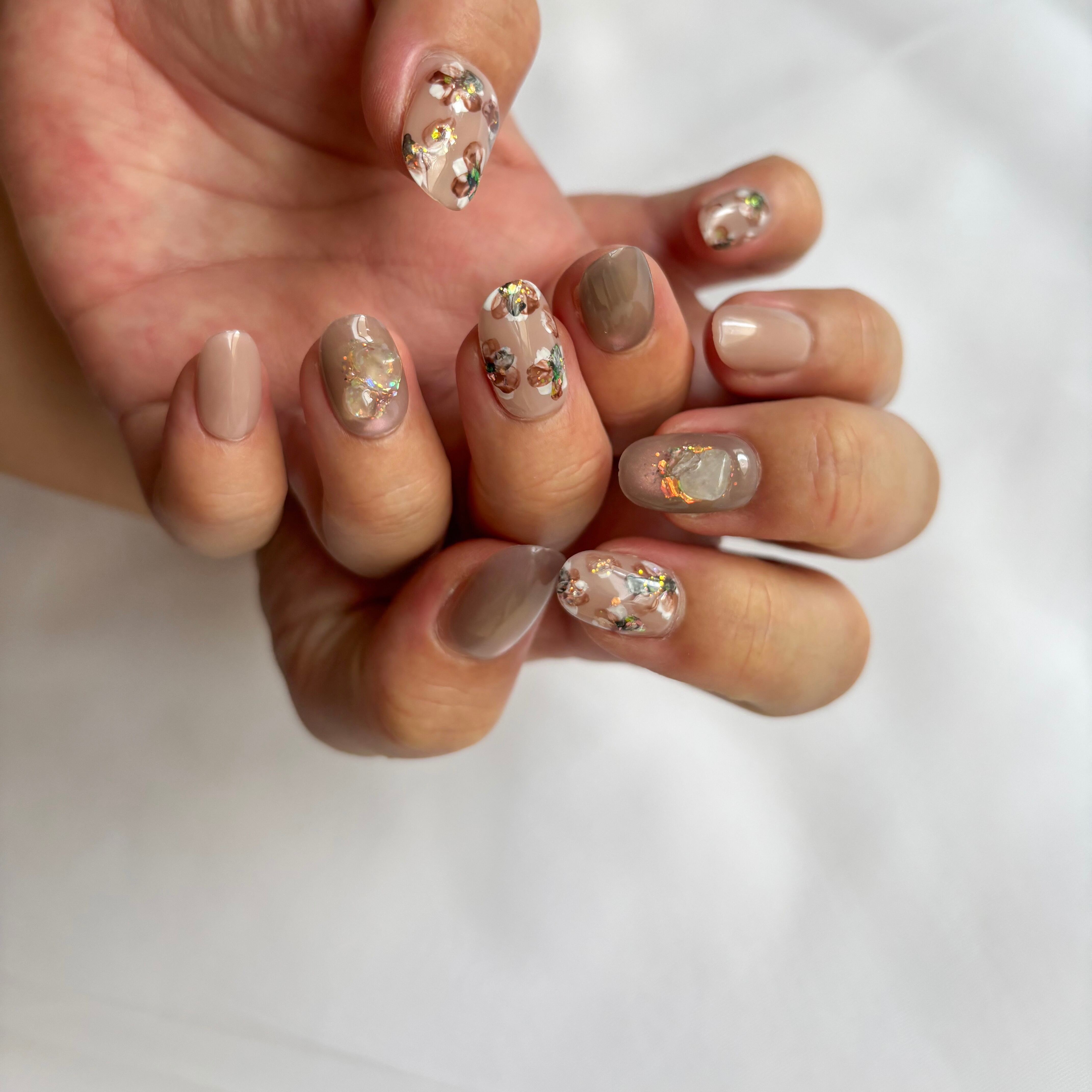 12色のマグネットジェル×繊細な手描きインクアートのお花が、大人かわいいデザイン♡