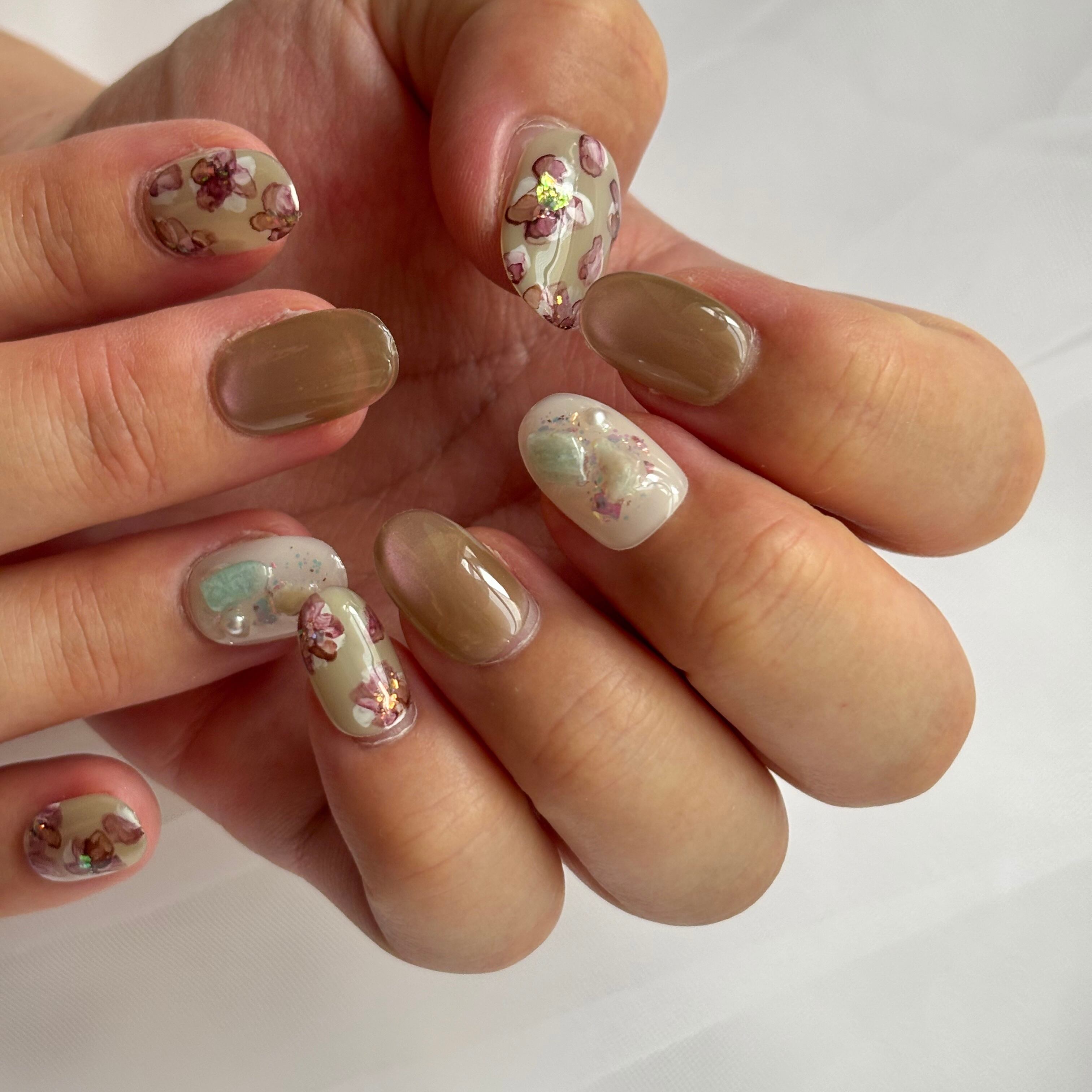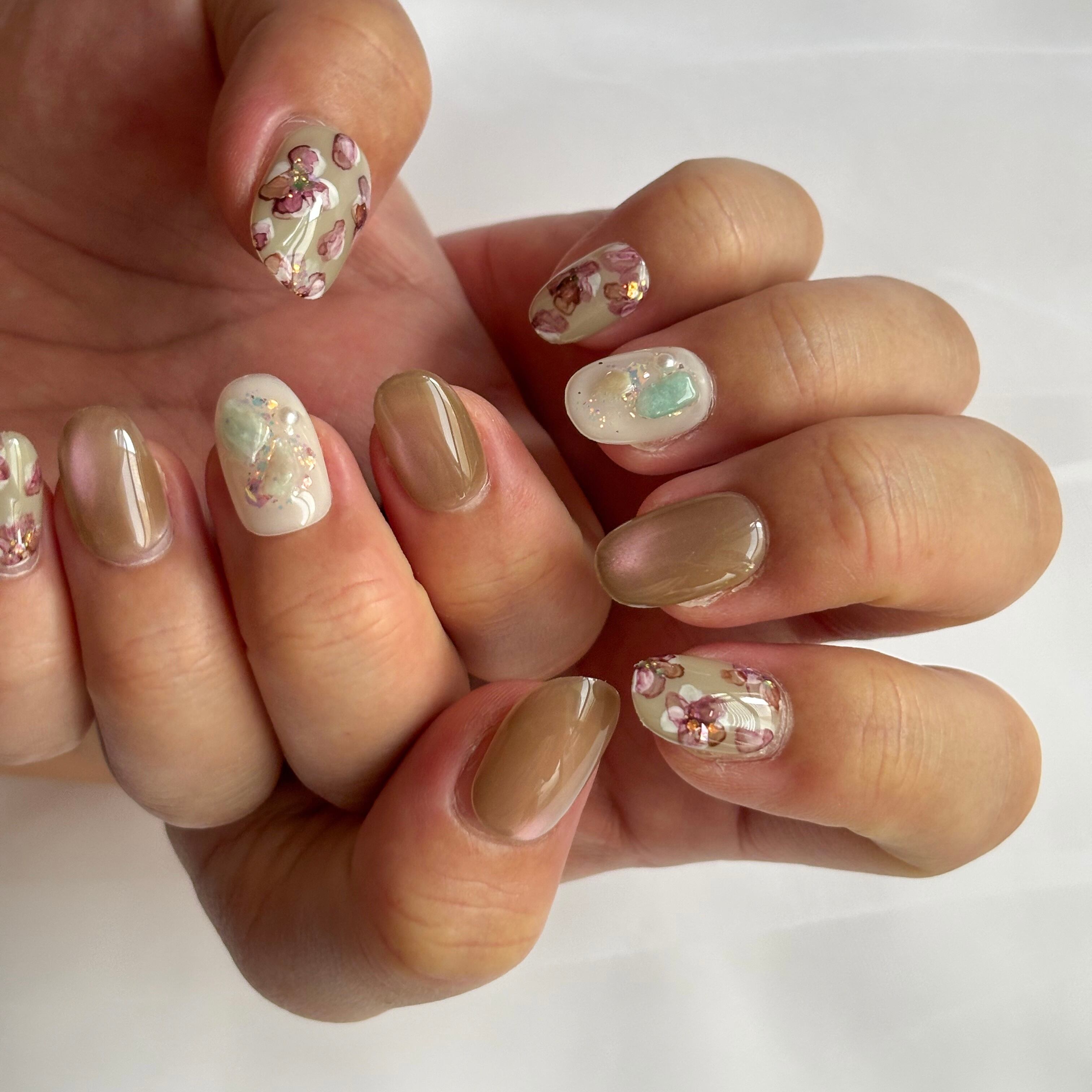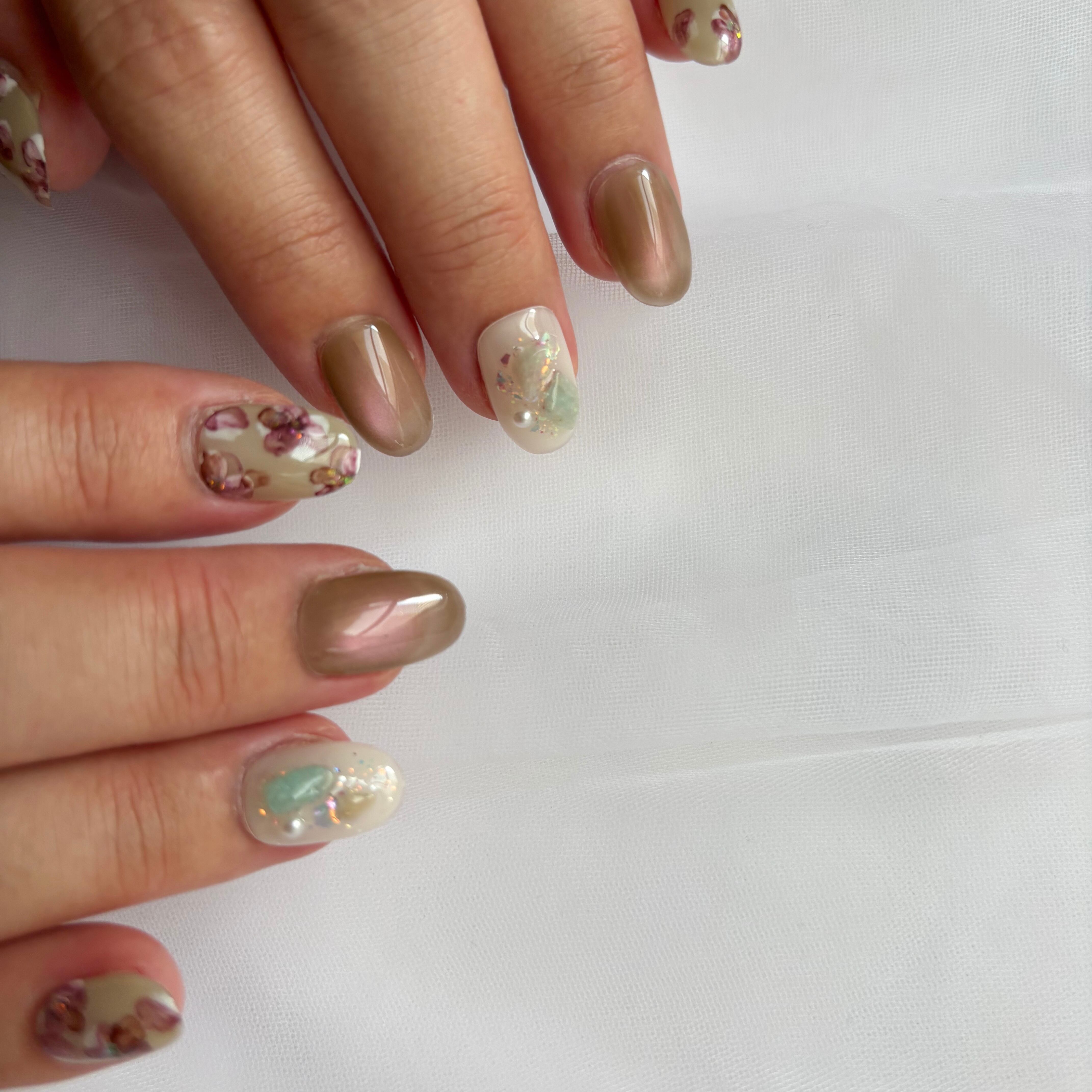 12色のマグネットジェル×繊細な手描きインクアートのお花が、大人かわいいデザイン♡