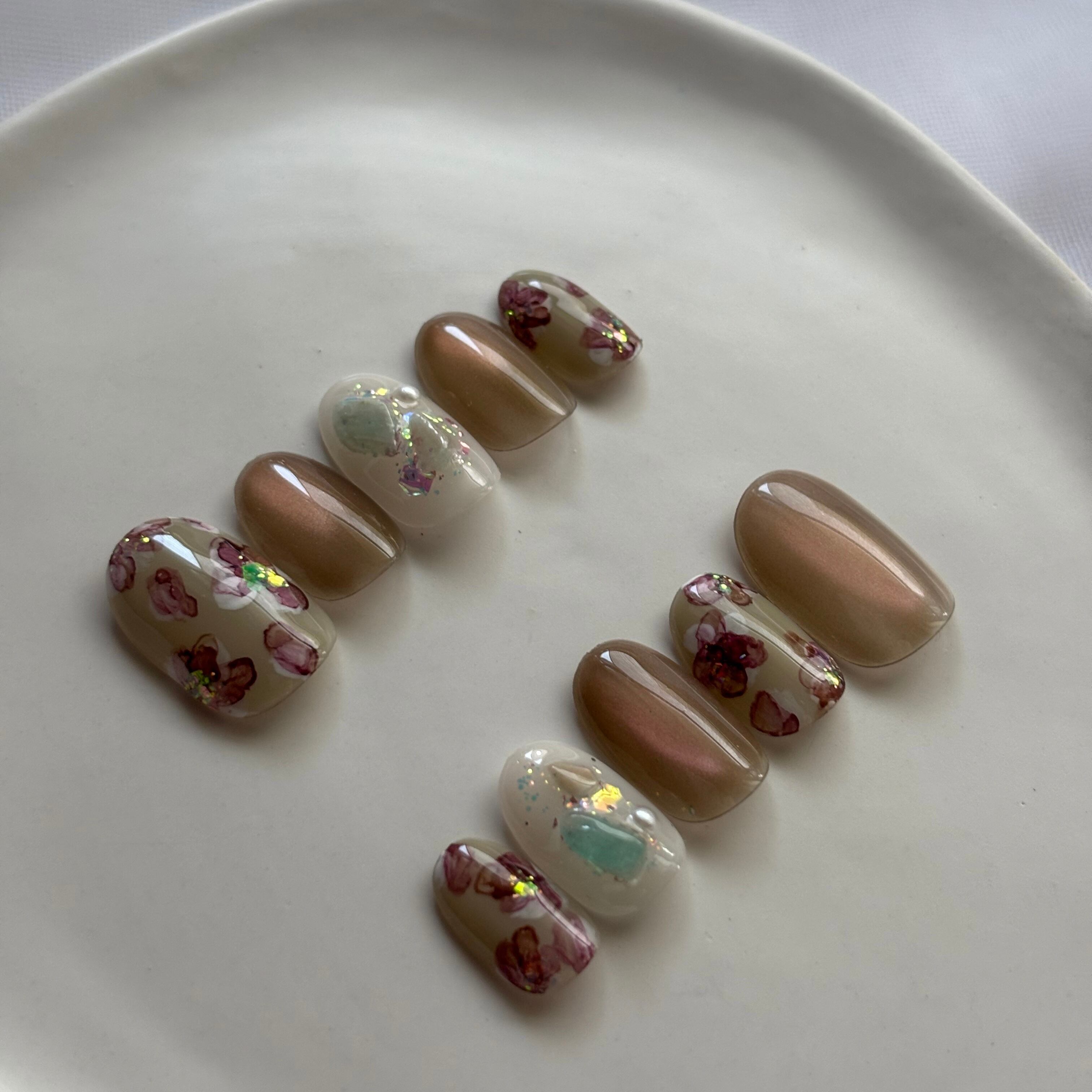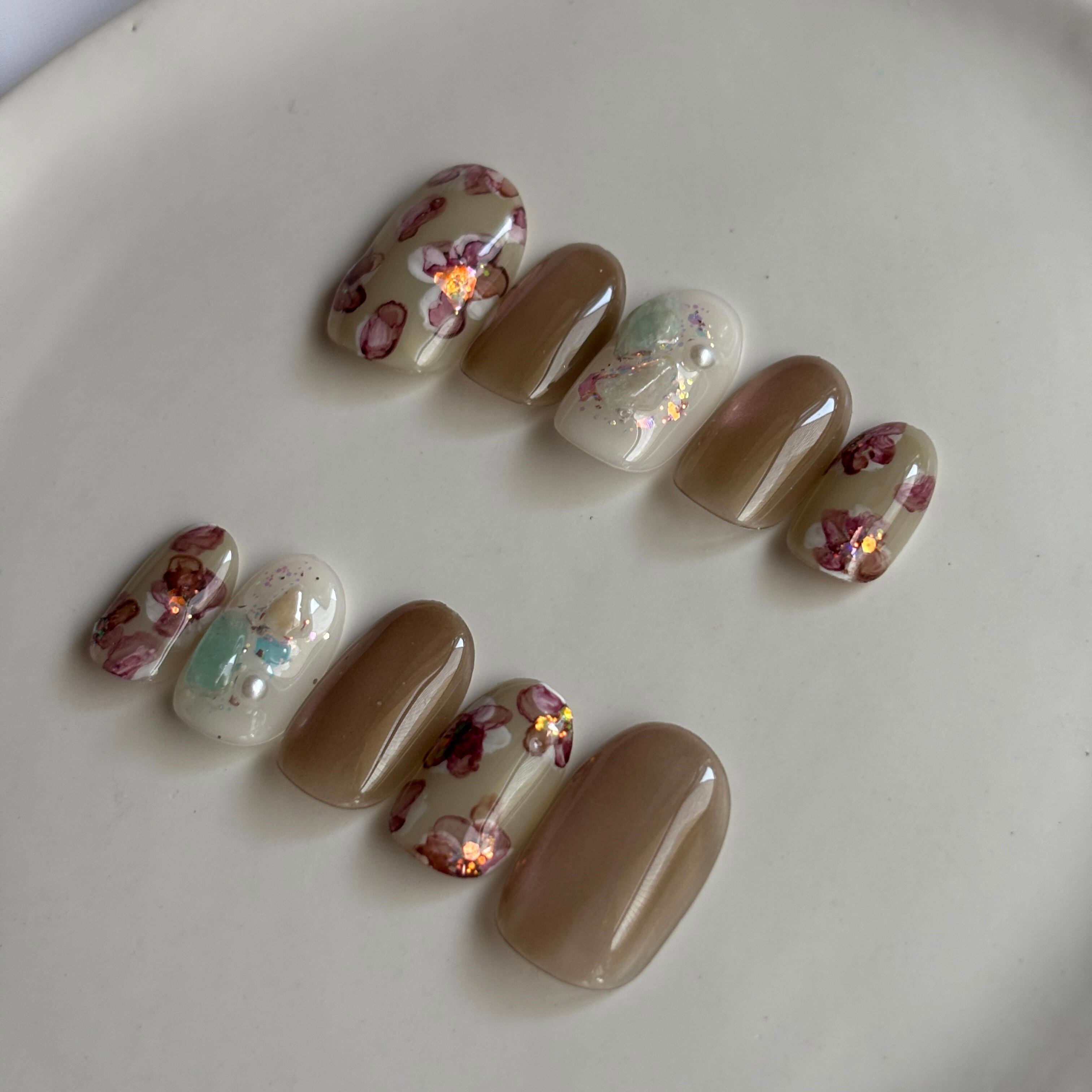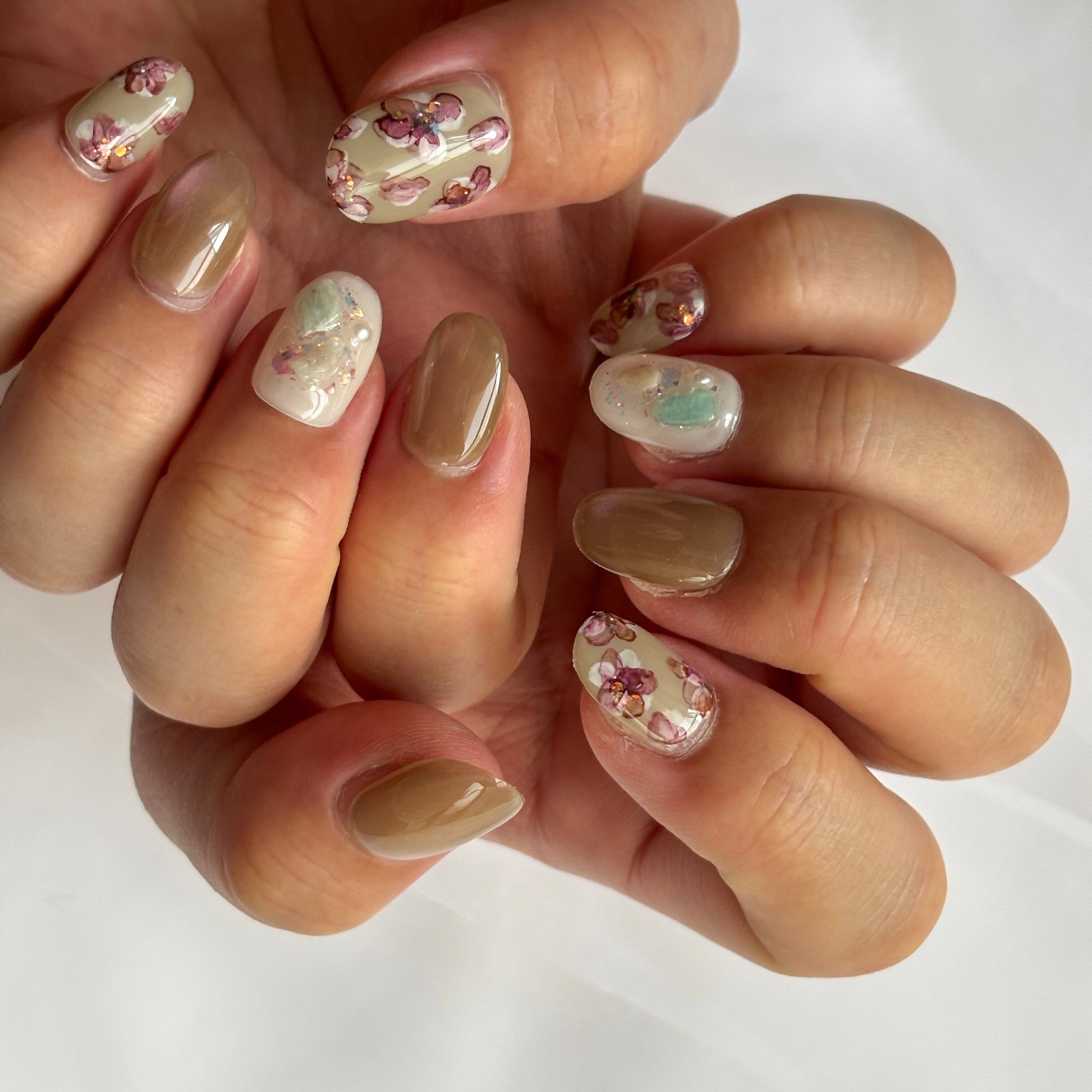 12色のマグネットジェル×繊細な手描きインクアートのお花が、大人かわいいデザイン♡