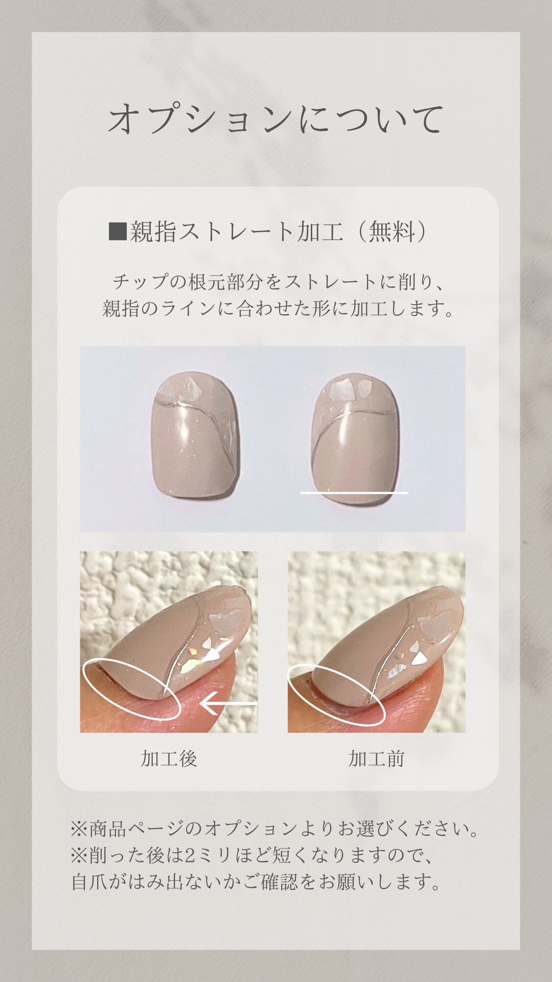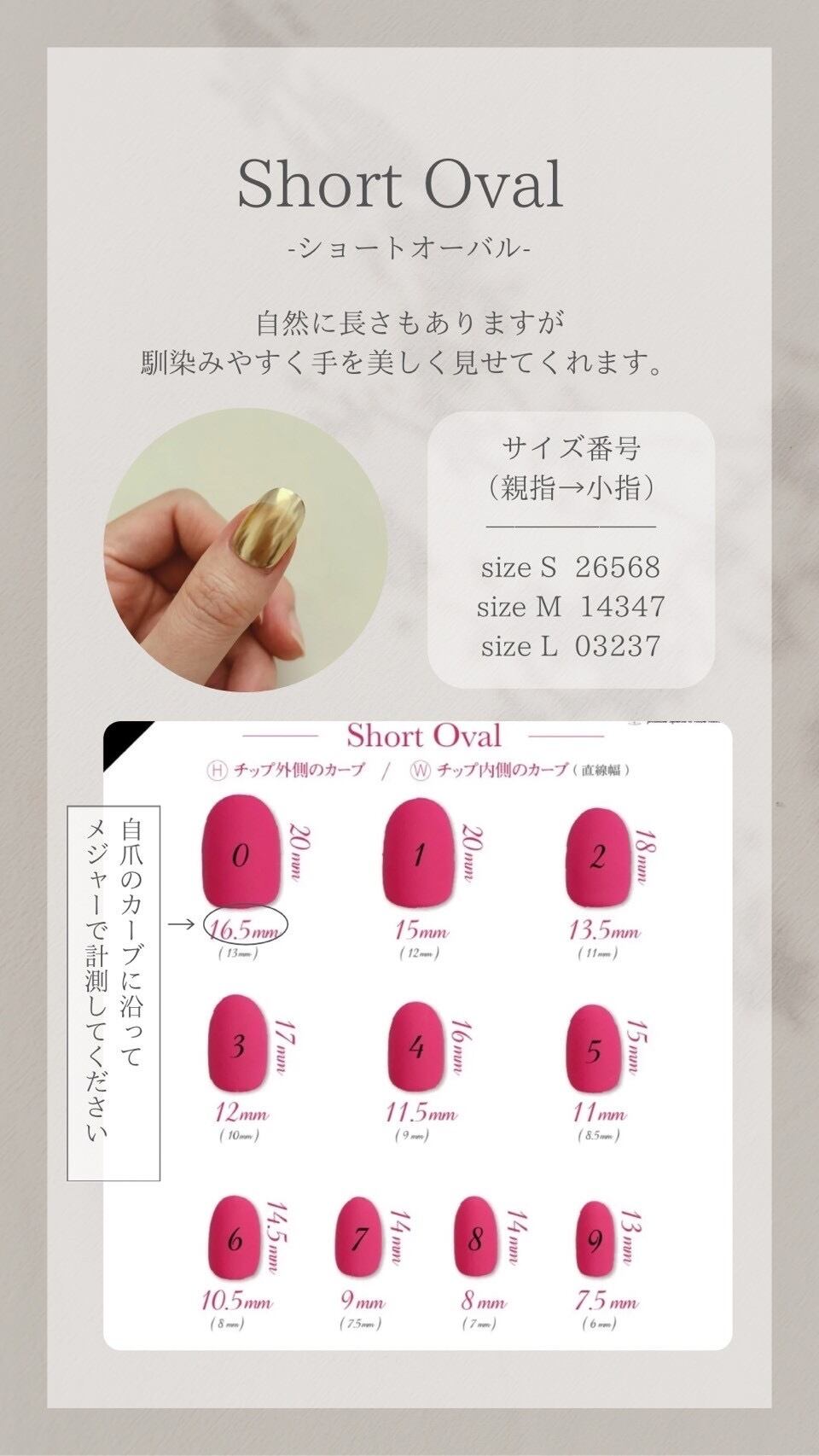 ■計測用チップにて自爪に合うサイズをお選び頂くと、より綺麗に着用して頂けます。