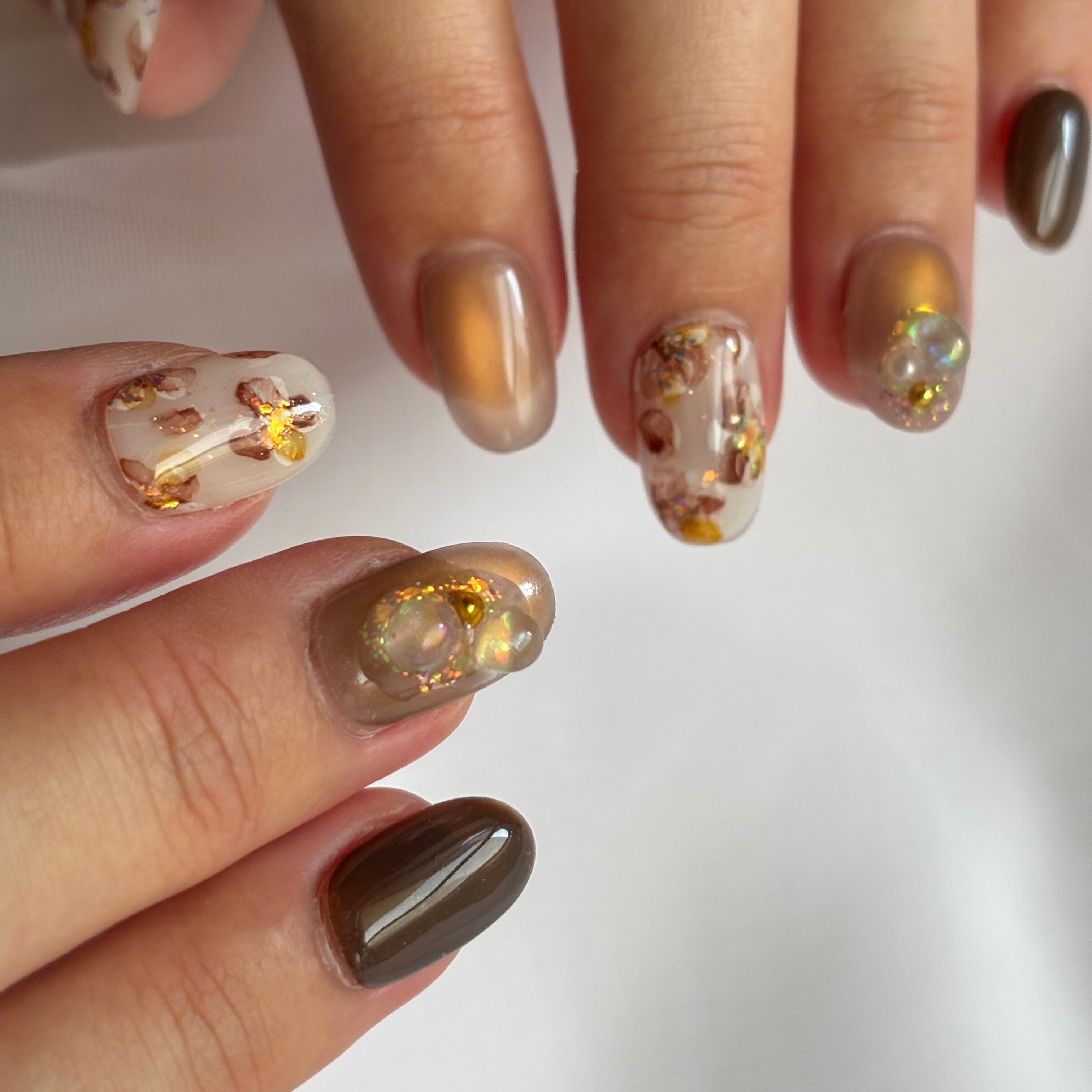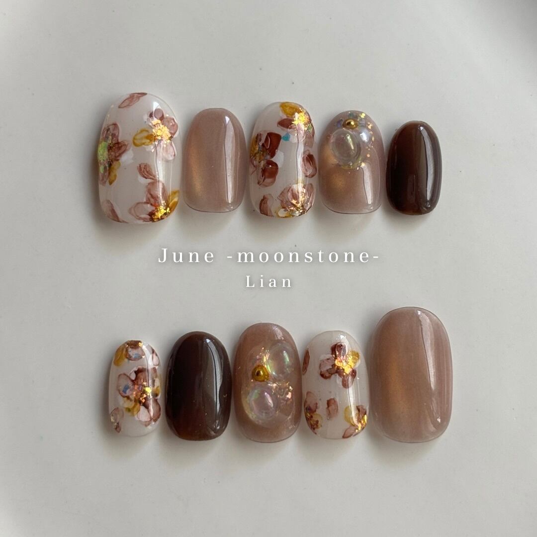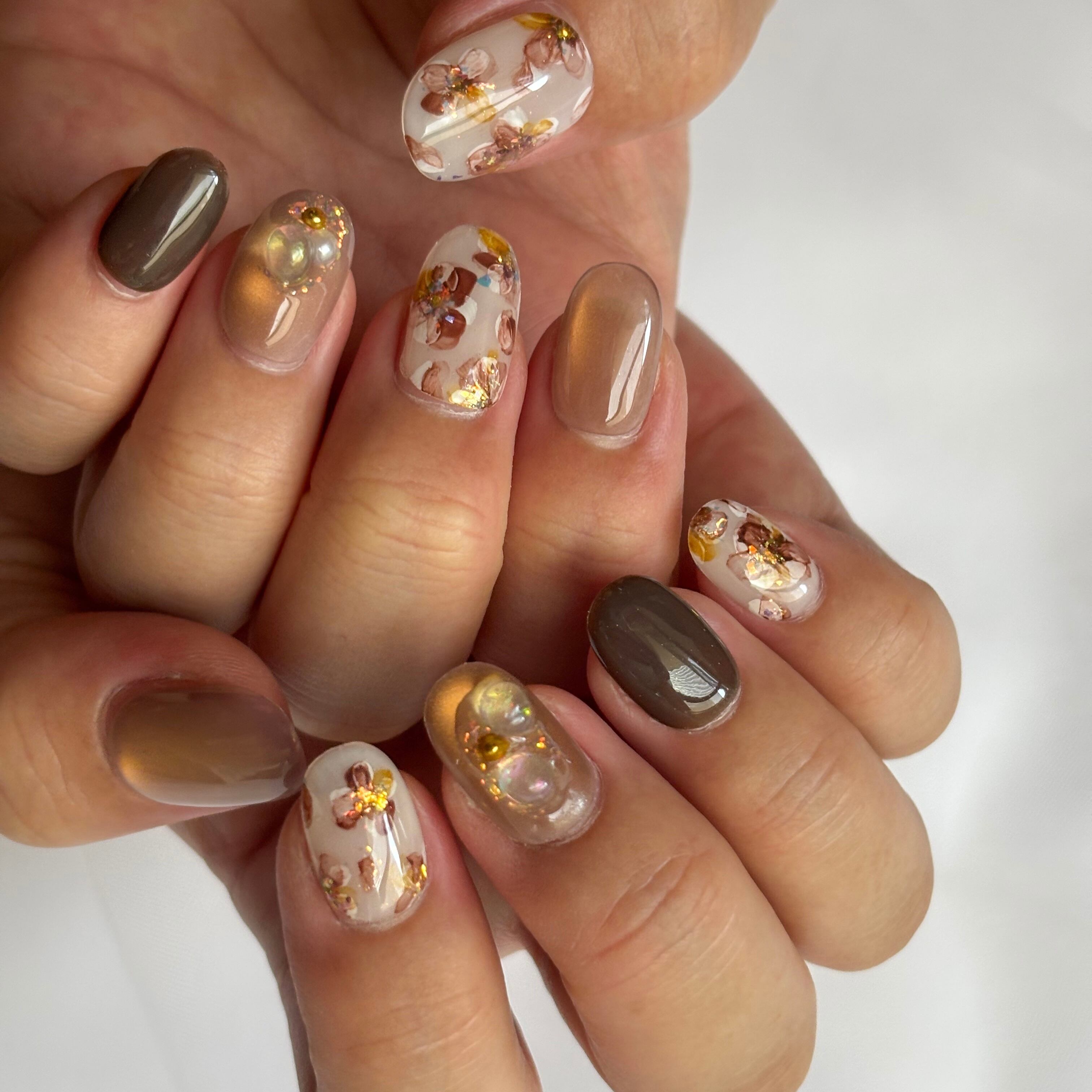 12色のマグネットジェル×繊細な手描きインクアートのお花が、大人かわいいデザイン♡