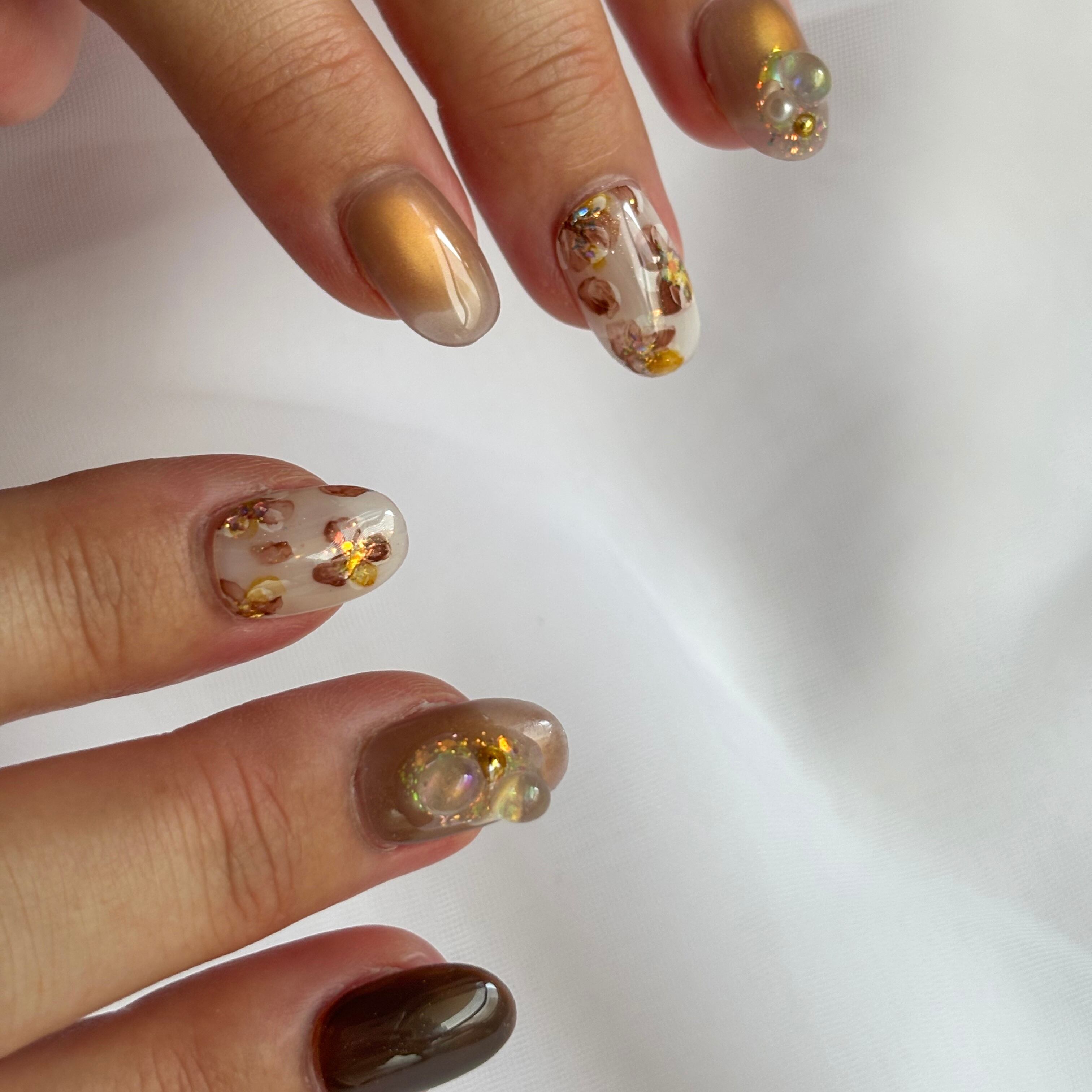 ■ベースカラーから仕上げには全てジェルを使用しておりますので光沢感と強度があり、ストーンや飾りは取れにくくなっております。