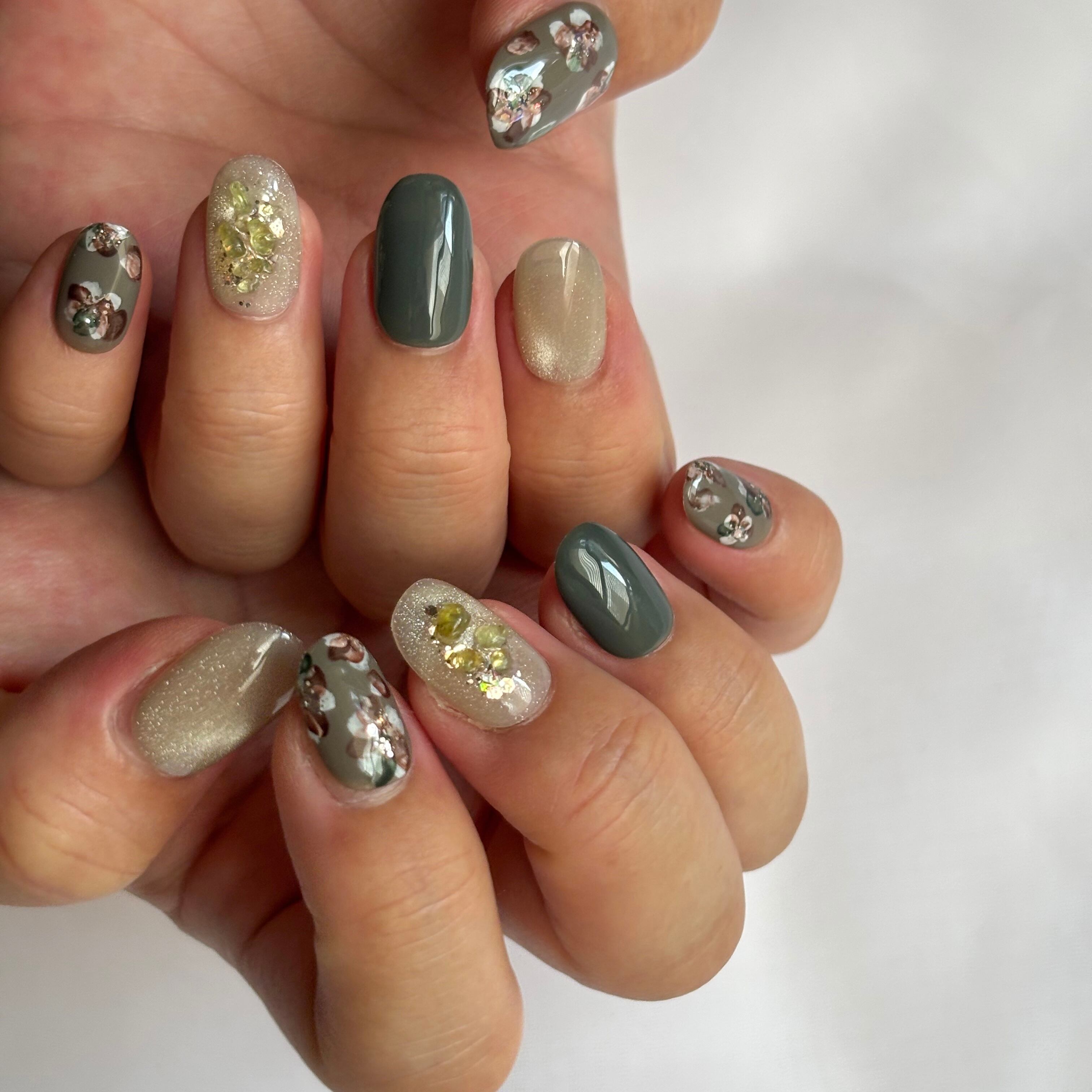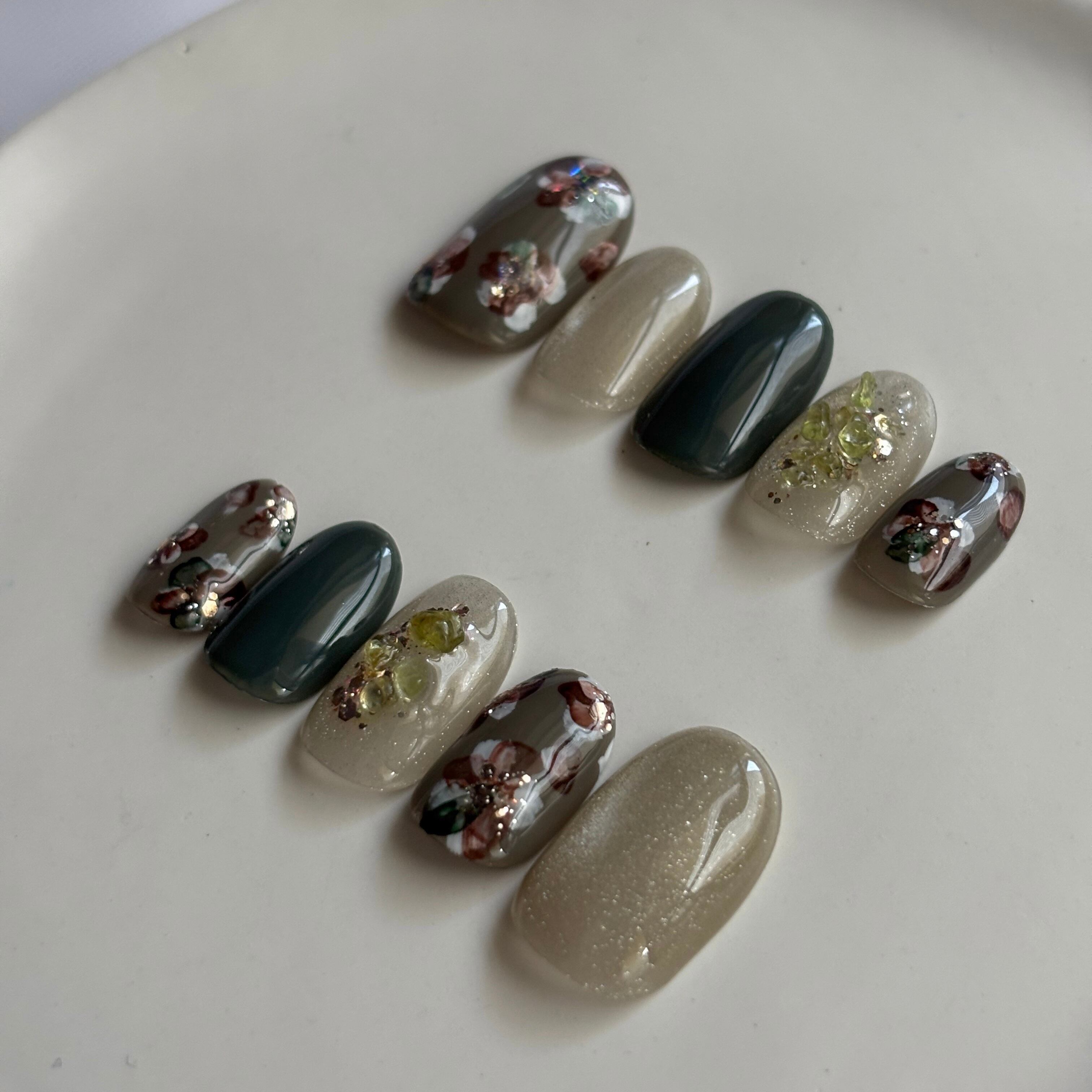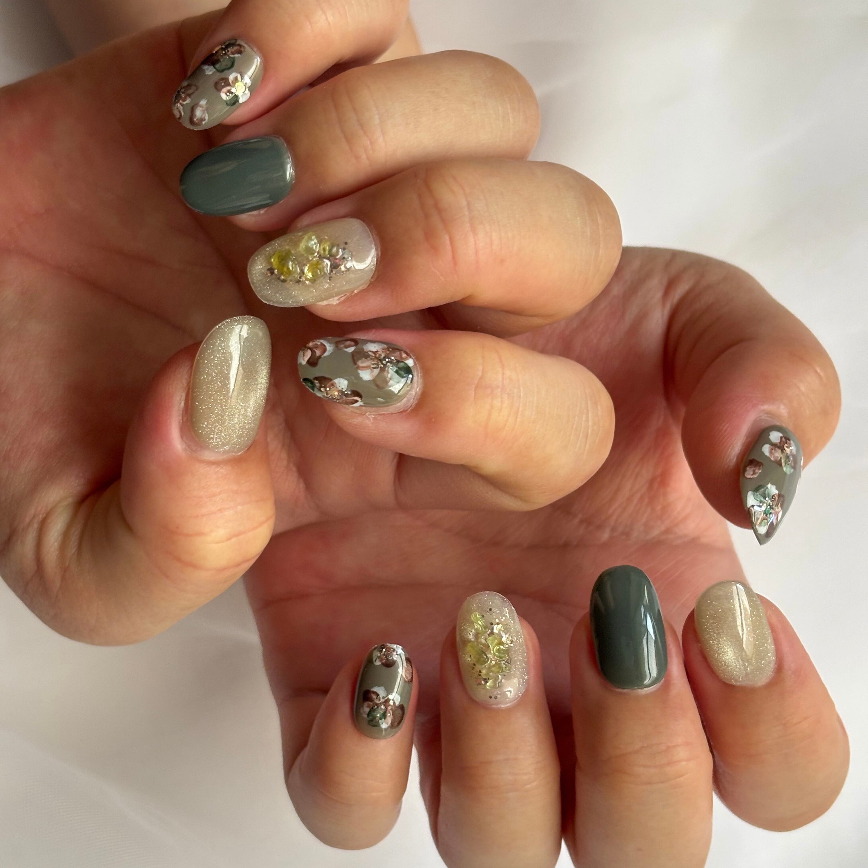 12色のマグネットジェル×繊細な手描きインクアートのお花が、大人かわいいデザイン♡