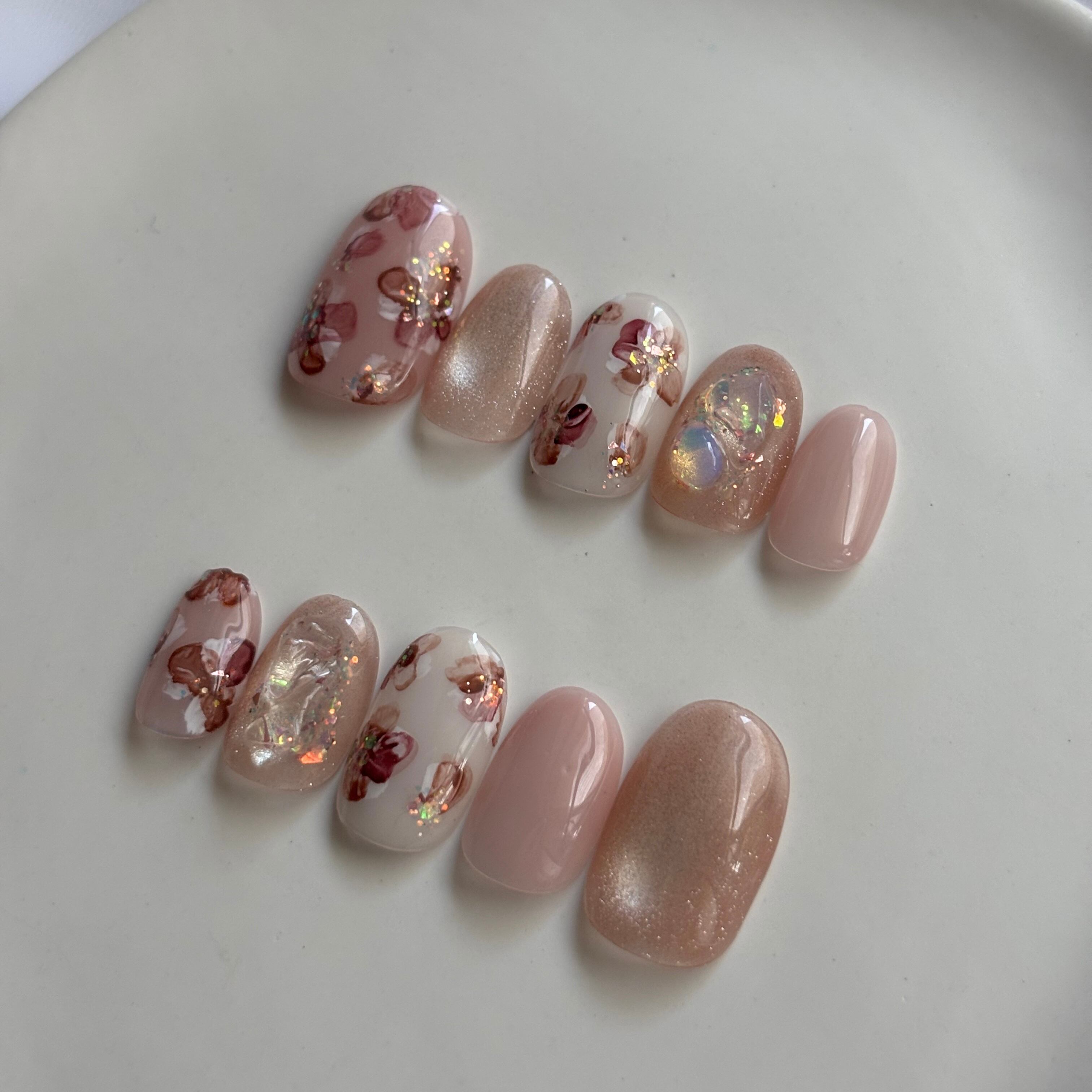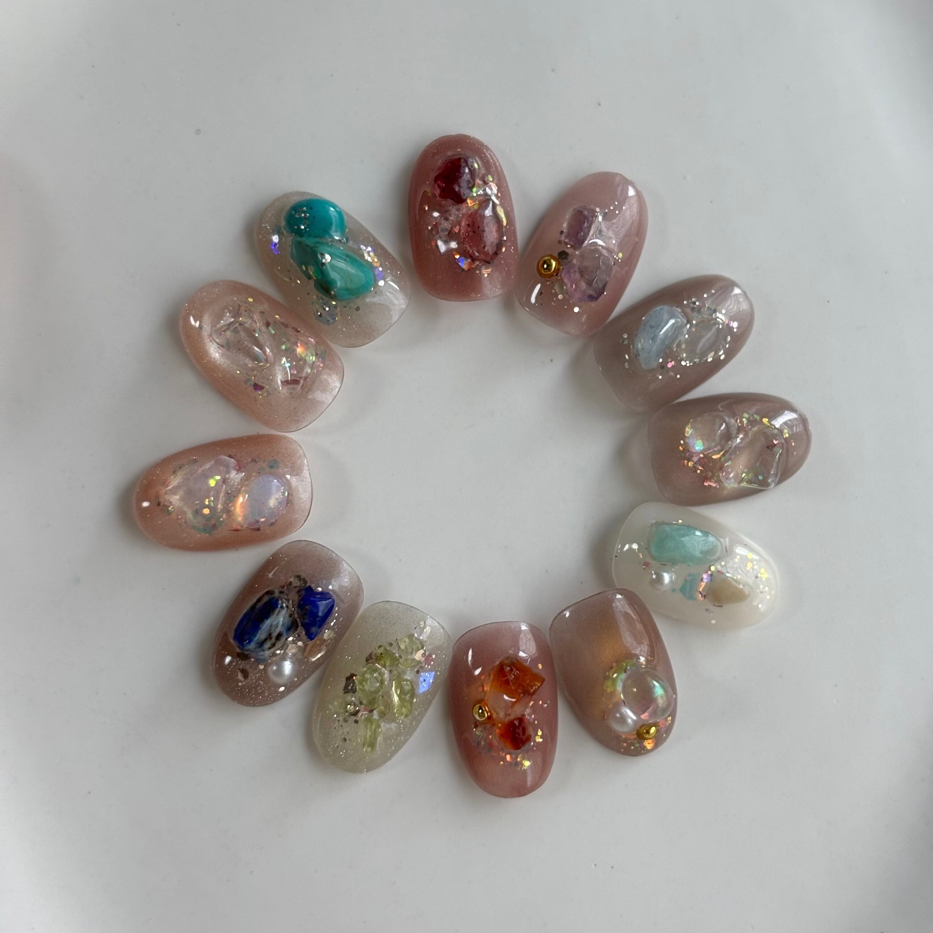 ■ベースカラーから仕上げには全てジェルを使用しておりますので光沢感と強度があり、ストーンや飾りは取れにくくなっております。