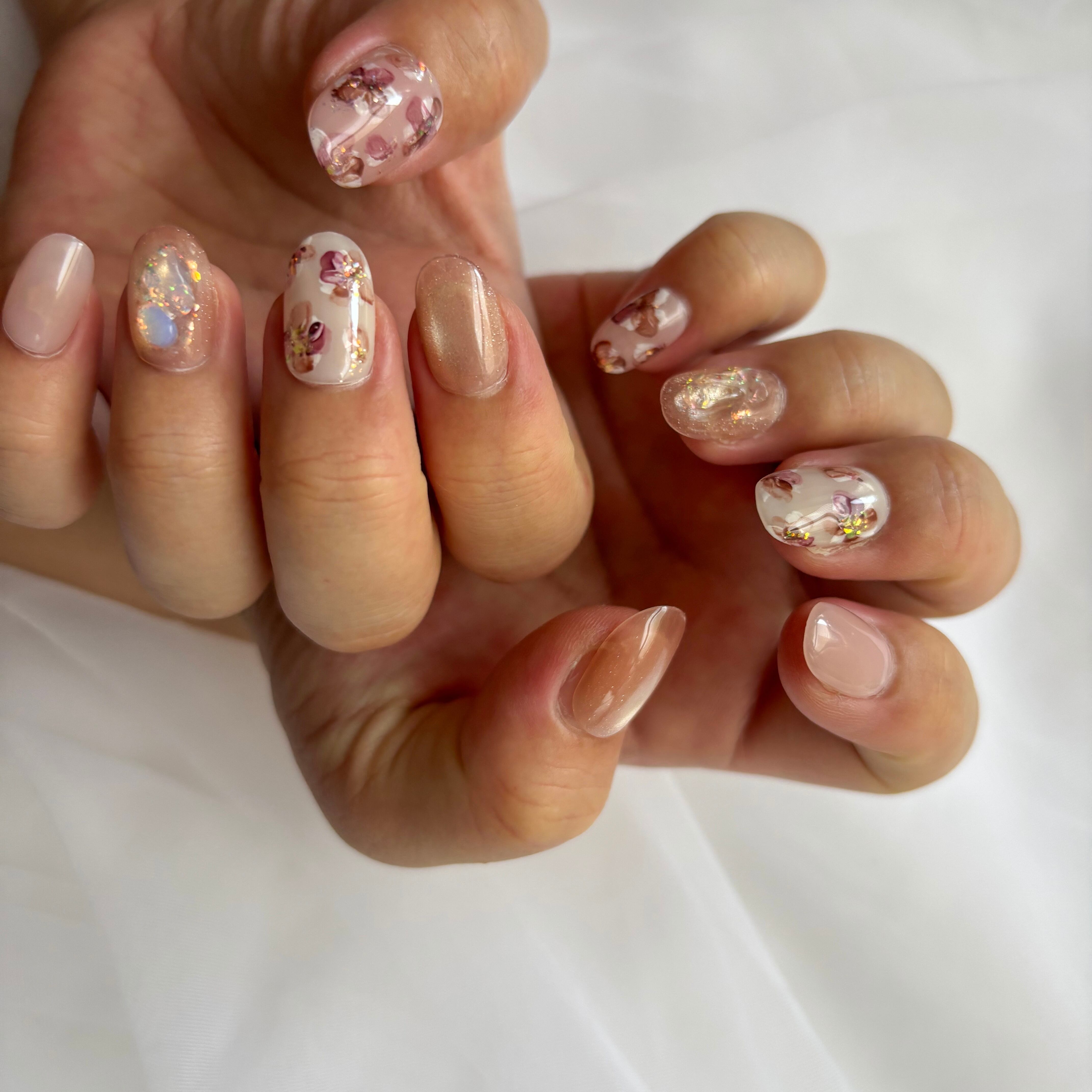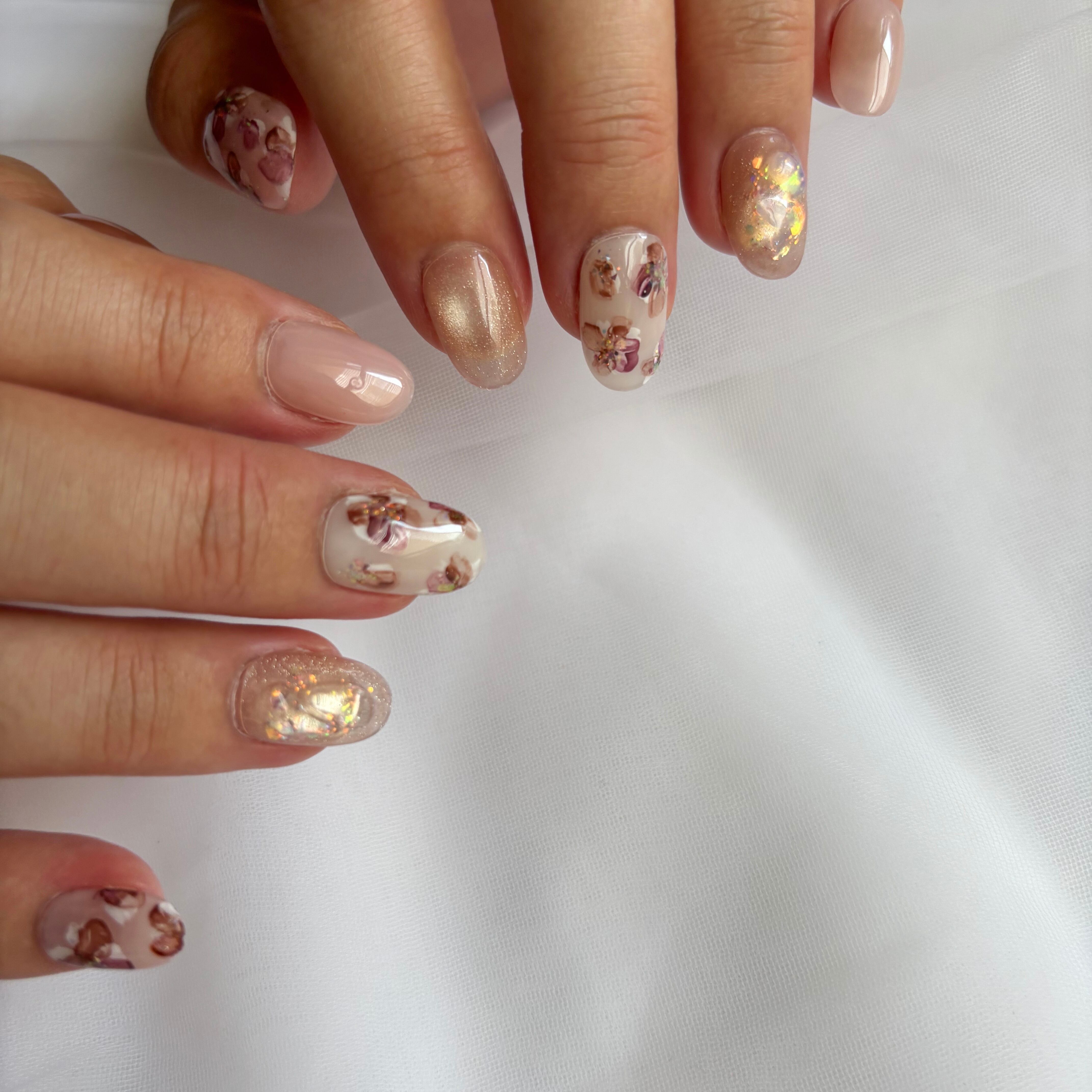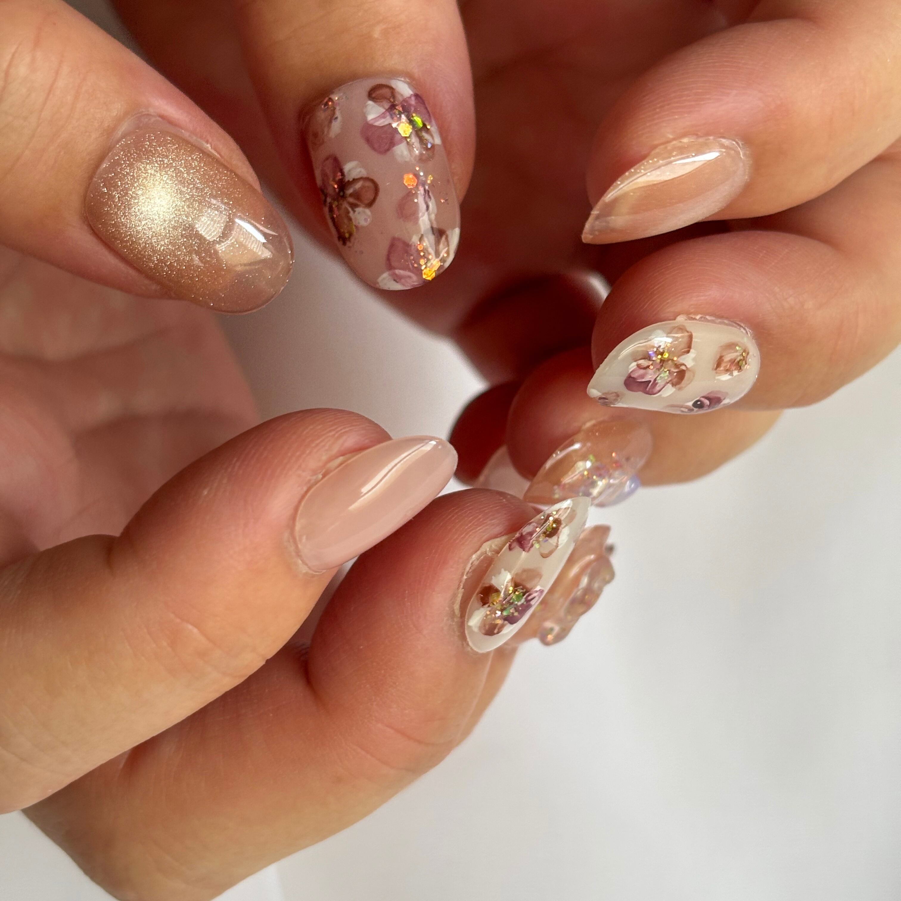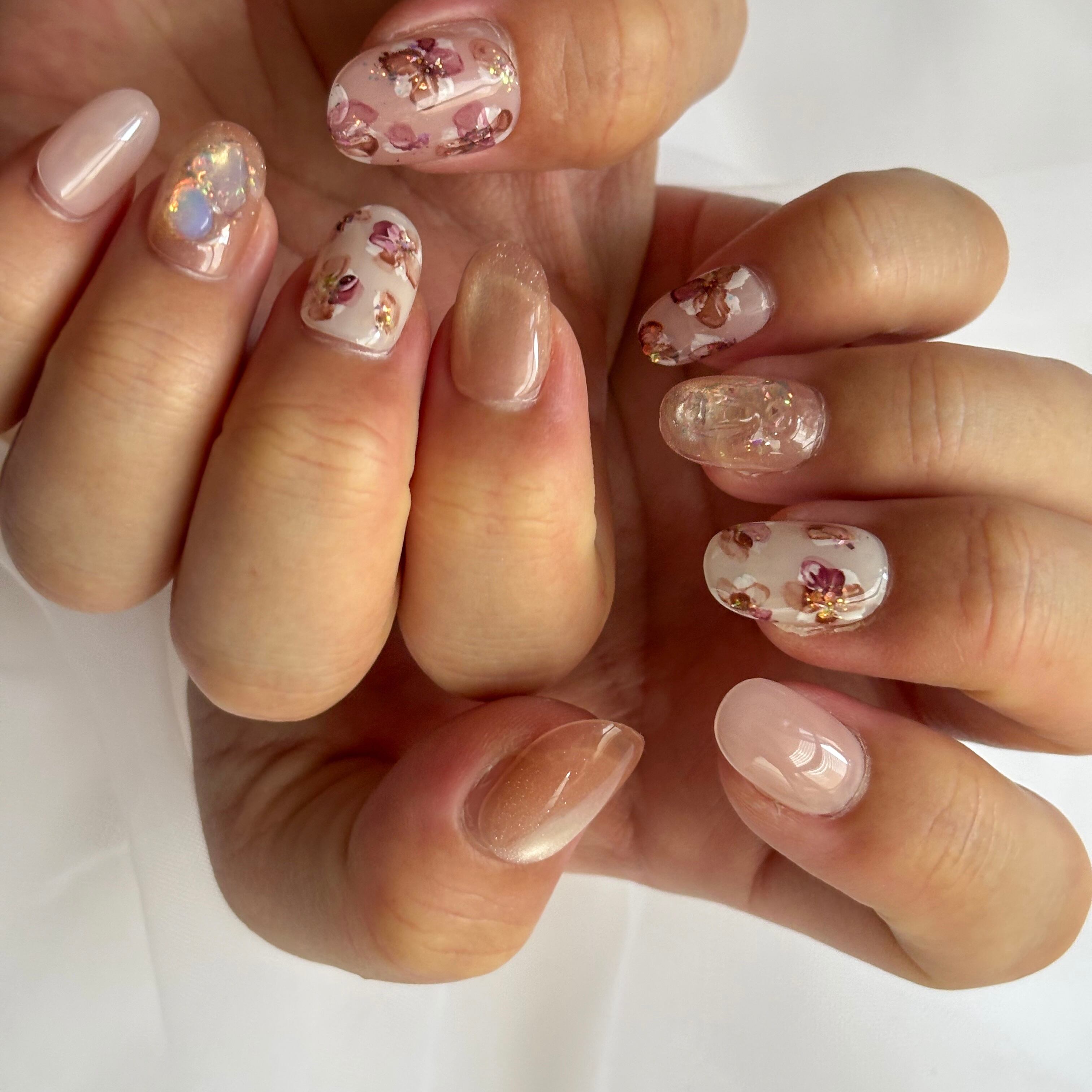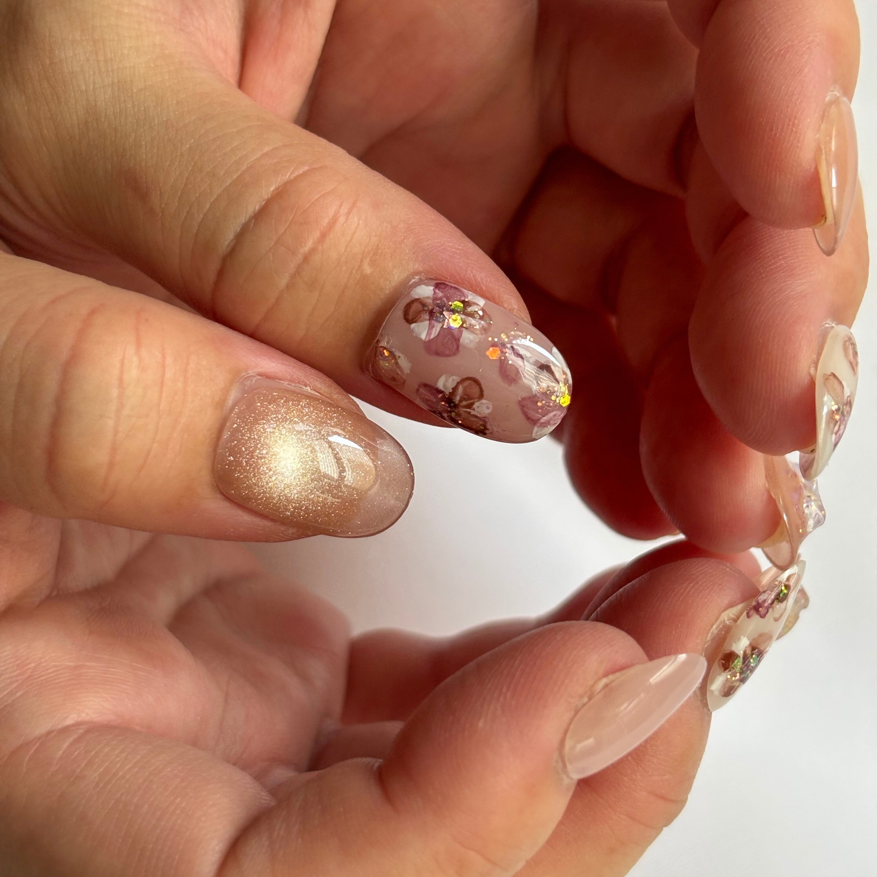 12色のマグネットジェル×繊細な手描きインクアートのお花が、大人かわいいデザイン♡