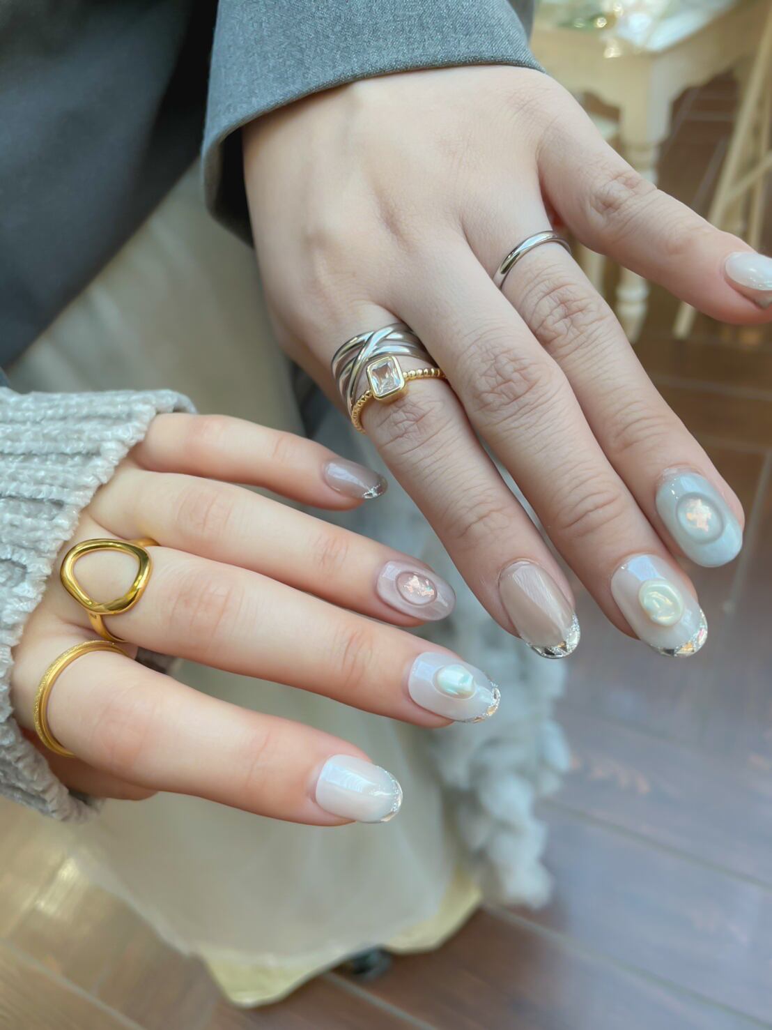 角度によって繊細にきらめき、指先を美しく見せます。
