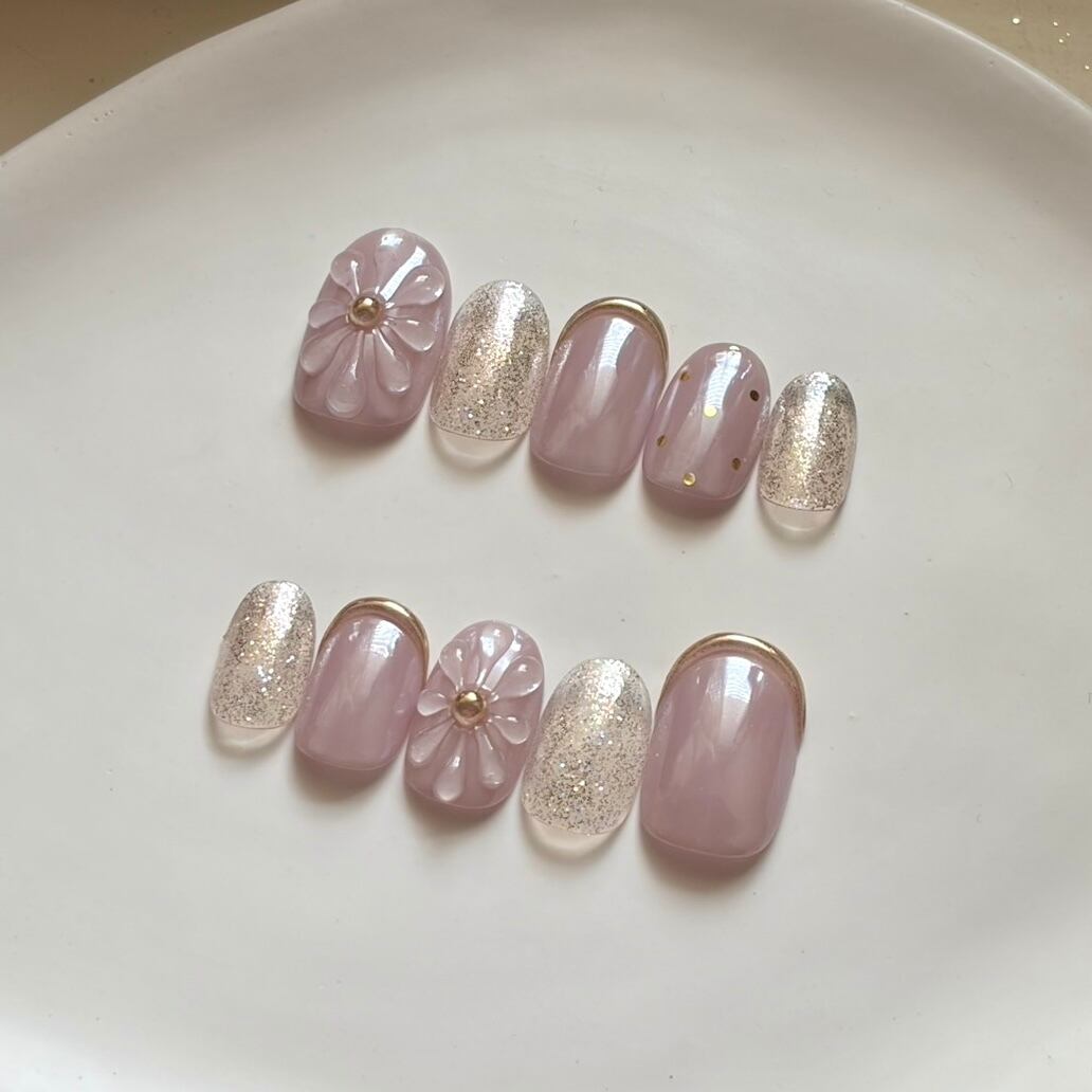 淡いピンクにやわらかな艶とゴールドを添えた